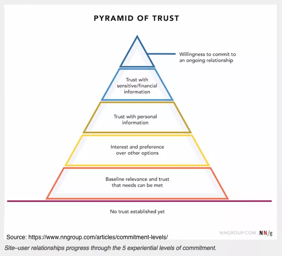 認知 → 興味 → 信頼 → 比較 → 行動 → 継続 → 推奨